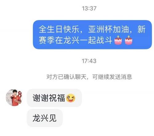 另一名中場(chǎng)核心李鎮(zhèn)全,和多支球隊(duì)產(chǎn)生聯(lián)系,有球迷私信李鎮(zhèn)全為他送上了生日祝福,并表示新賽季在龍興一起戰(zhàn)斗。李鎮(zhèn)全的回復(fù)到:“謝謝祝福,龍興見(jiàn)”,這一語(yǔ)雙關(guān)讓球迷可以放心了。首先李鎮(zhèn)全新賽季還會(huì)為重慶效力,哪也不會(huì)去,沖了兩個(gè)賽季才升入中超,球員對(duì)球隊(duì)有感情。其次,也再一次確定明年重慶銅梁龍的主場(chǎng)將會(huì)放在龍興。
